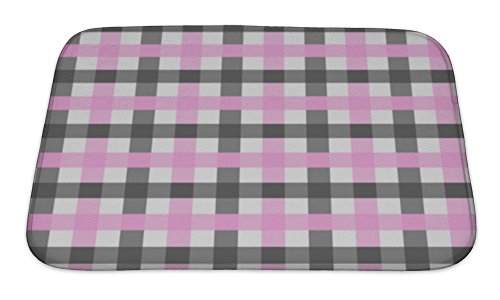 Gear New Pink White & Black Plaid Fabric Bath Rug Mat No Slip Microfiber Memory Foam