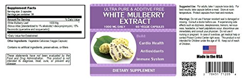 -. Feature : 1 Month Supply of 100% Pure White Mulberry Extract / FREE Diet Phone Support. Call the number on the bottle after placing your order, and we will send you a diet guide, weight loss log, and recipes, in PDF format. / Blood Sugar Control. Fights Cholesterol & Heart Disease. Promotes Healthy Metabolism. / Made in USA. Pure, Quality Appetite Suppressant. / ★ GET UP TO 25% OFF WHEN YOU PURCHASE 2 OR MORE! (Automatically applied during checkout) ★