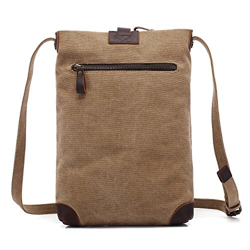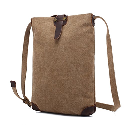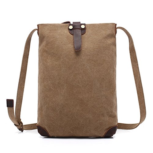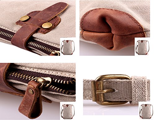 This bag is made of pure cotton canvas,which is soft, strong and durable, comfortable to carry. It is very suitable for travel lovers to carry for short trips, also can be uesd in the daily life as a school bag or shopping bag. You can put A4 magazines, books, ipad, cell phone, wallet,umbrellas and other things in it.Feature: Material: Canvas,high quality genuine leather, mental Size:10.2 x 2.7 x 12.6 inches weight: 1.6 pound Note: Please allow little difference in size measurement or color due to different measurement tool or light environment. 0