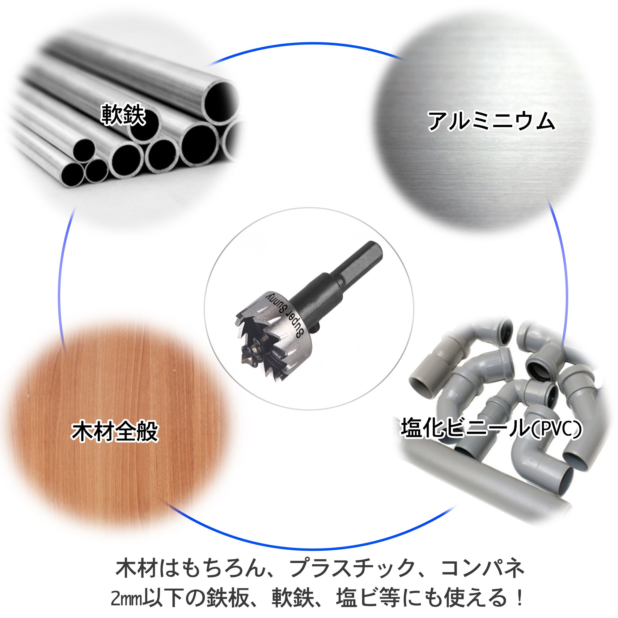Iron / aluminum / gypsum board / plastic / metal alloy / bimetal / styrol / wood etc. can drill.