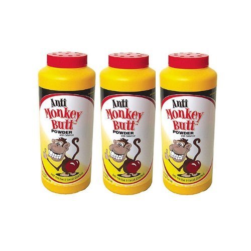 -. Binding : Baby Product -. Brand : Anti Monkey Butt -. Feature : Ideal for butt busting activities such as motorcycling, bicycling, horseback riding / Anti-friction plus sweat absorber Powder / May be used daily / For the temporary relief from pain and itching associated with chaffing and rashes. / Specially formulated to absorb excess sweat and reduce frictional skin irritation -. Label : Anti Monkey Butt -. Manufacturer : Anti Monkey Butt -. ProductGroup : Baby Product -. ProductTypeName : BABY_PRODUCT -. Publisher : Anti Monkey Butt -. Studio : Anti Monkey Butt -. Title : Anti Monkey Butt Powder 6 Ounce