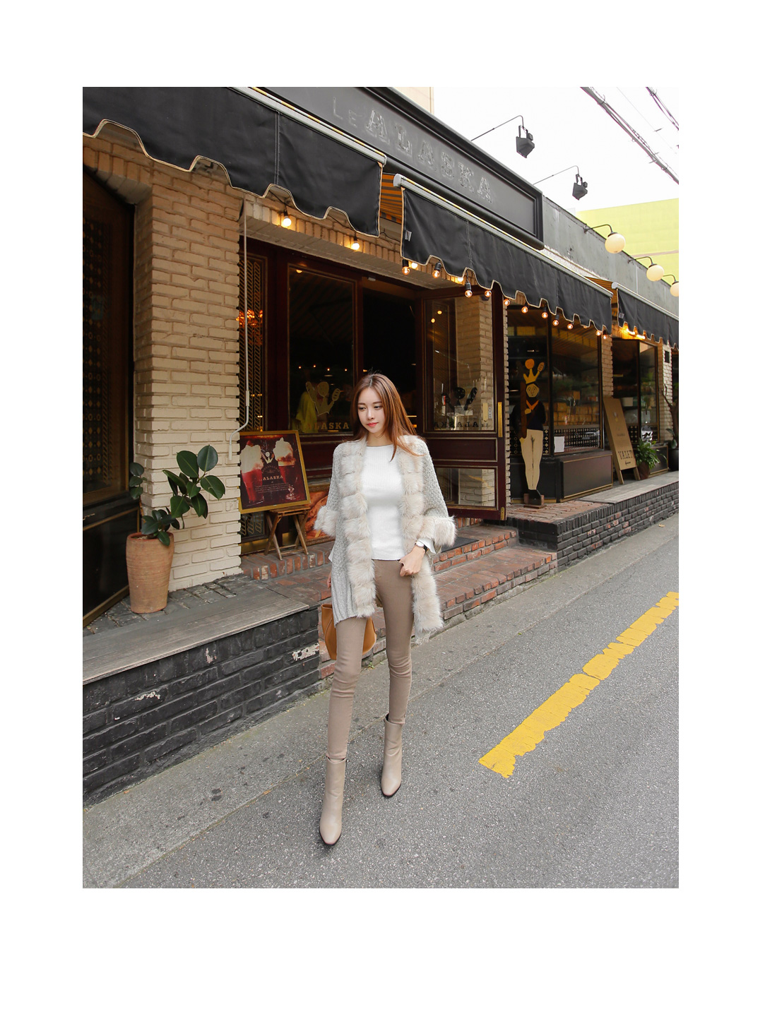 깔끔한 기본 디자인으로 다양한 아이템 위에 함께하실 수 있는건 물론! 네크라인과 소매라인에 페이크 퍼로 연출되며 따뜻하게 보온 효과도 있으면서 더욱 멋스러워요~