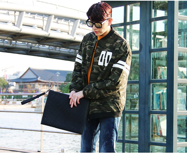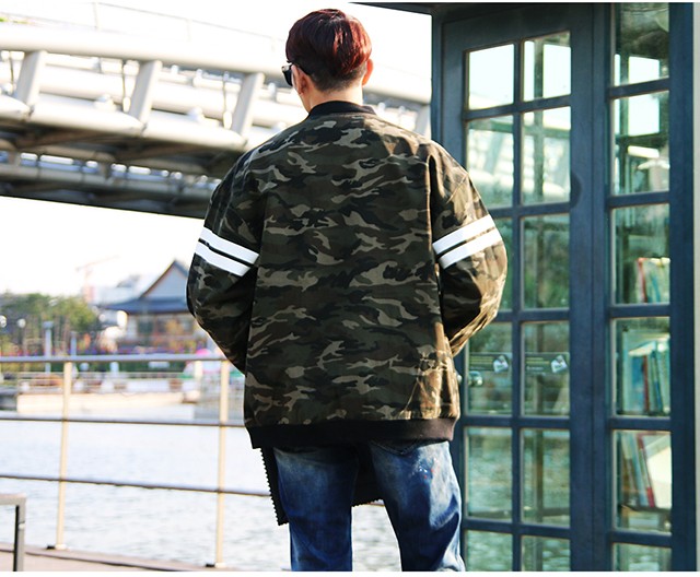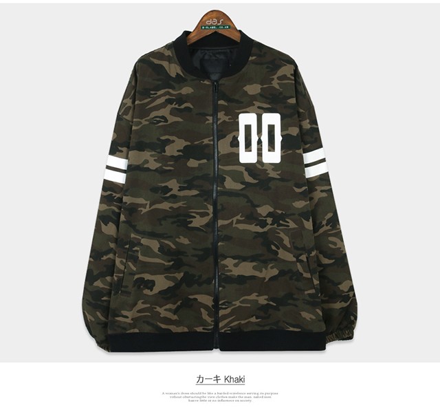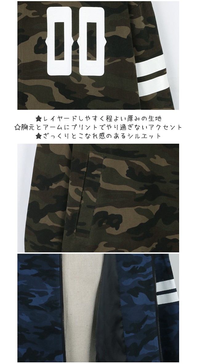 カモフラ柄に胸元とアームにプリントでアクセント。