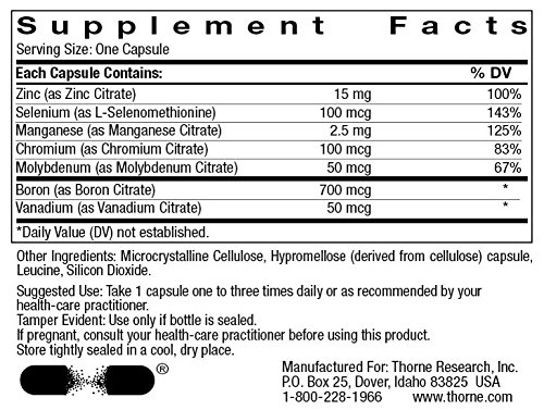 -. Binding : Health and Beauty -. Brand : Thorne Research -. EAN : 0693749242031 -. Feature : Provides seven essential trace minerals / Well-absorbed citrate chelates / Cofactors for numerous enzyme reactions in the body / Contains the well-researched selenomethionine / Supplements key minerals that can be deficient in food -. Label : Thorne Research -. LegalDisclaimer : These statements have not been evaluated by the Food & Drug Administration. These products are not intended to diagnose, treat, cure or prevent any disease. -. Manufacturer : Thorne Research -. MPN : M242 -. PackageQuantity : 90 -. PartNumber : M242 -. ProductGroup : Health and Beauty -. ProductTypeName : HEALTH_PERSONAL_CARE -. Publisher : Thorne Research -. Studio : Thorne Research -. Title : Thorne Research - Trace Minerals - 90 Vegetarian Capsules -. UPC : 693749242031