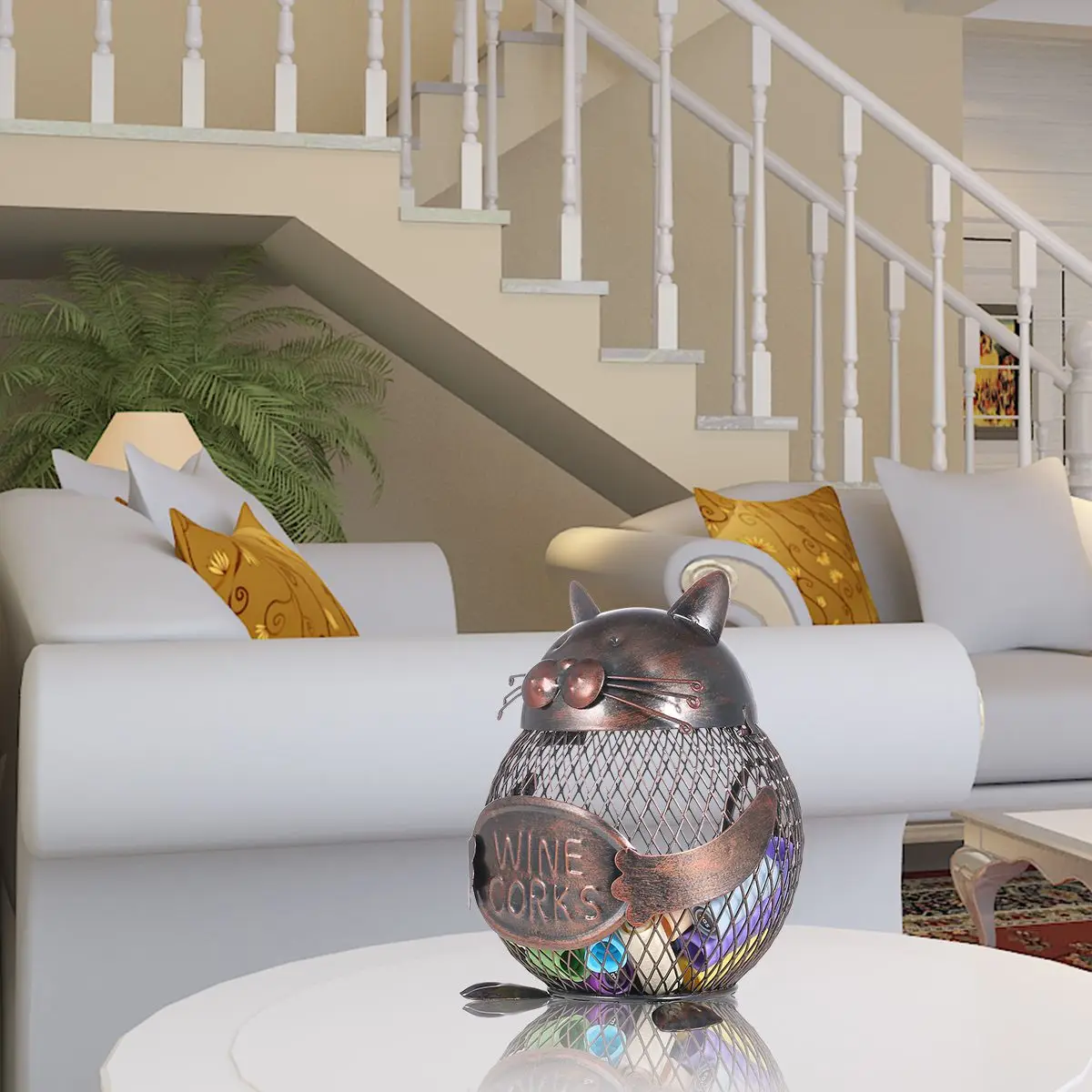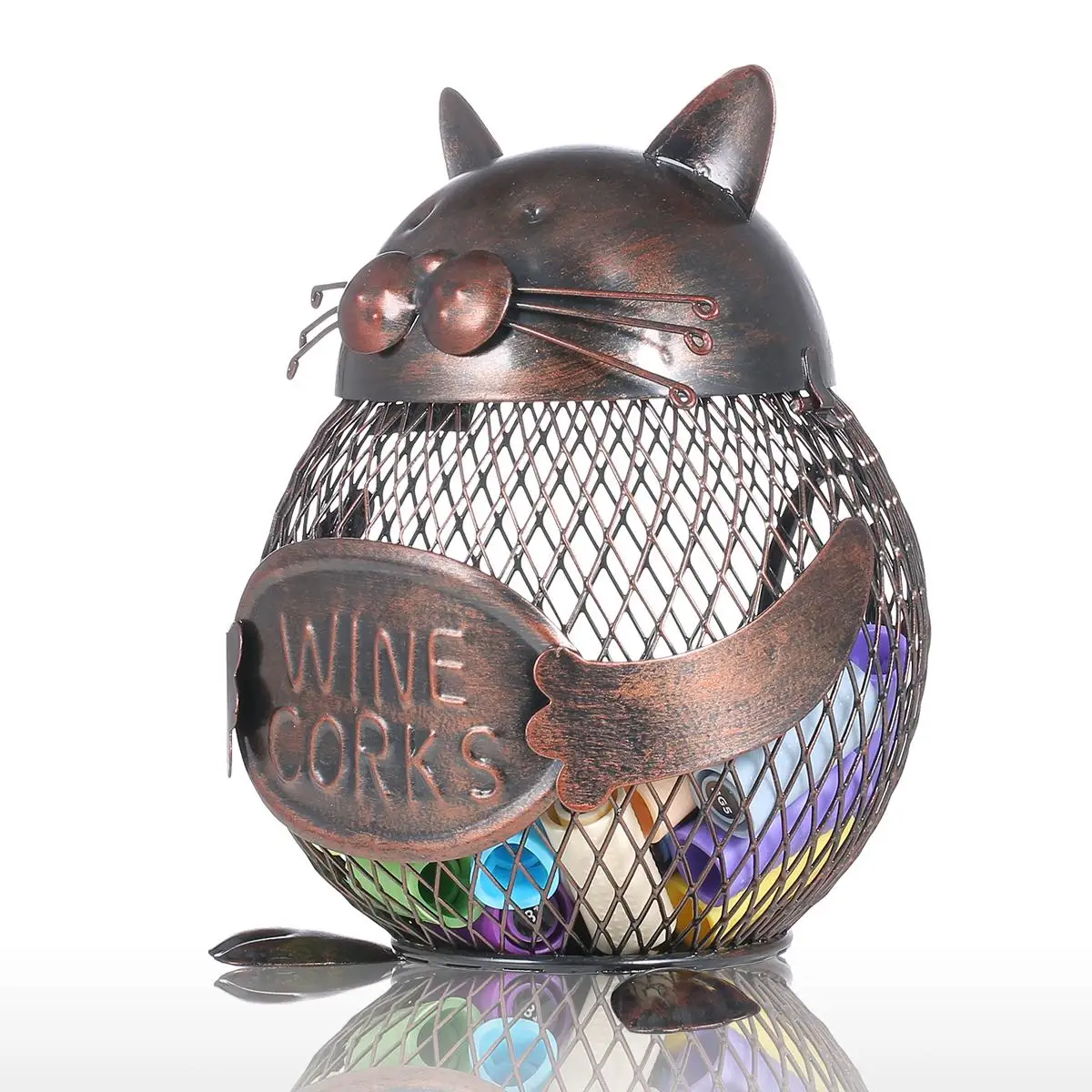 This is a cat shaped lovely and creative iron art wine cork container. It can be used to contain wine bottle corks or other tiny things. More than practical and artistic, it looks charmingly naive. No matter you put it on your desk or the entrance, it will add some artistic atmosphere to your home.