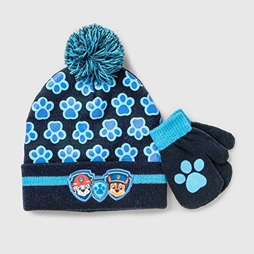 Binding : Apparel Product Description Your little one won't need to yelp for help staying warm on cold days when he has this PAW Patrol® Hat and Mitten set. These cozy winter accessories are the perfect way to keep him toasty while letting him show off his favorite pups. The PAW Patrol hat features an allover paw print pattern and a patch of Marshall and Chase smiling out, and the blue mittens are adorned with a light blue paw print in the same shade as the hat's pompom. In navy and bright blue, these PAW Patrol accessories will coordinate well with his other winter wear. 0