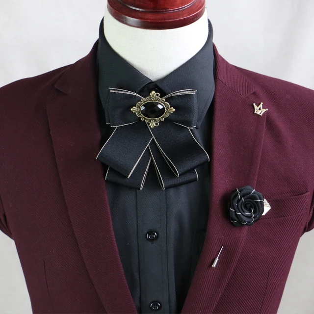 | [해외]새로운 무료 배송 패션 남성 남성 결혼식 신랑 들러리 한국어 활 칼라 브로치 레트로 블라우스 넥타이 관장 판매 |