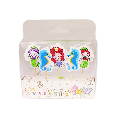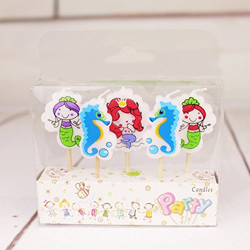 Birthday Candles Hippocampal Mermaid Candles Cartoon Birthday Candles Children'S Birthday Candles 3.5*1.8*0.5Cm Pack Of Five