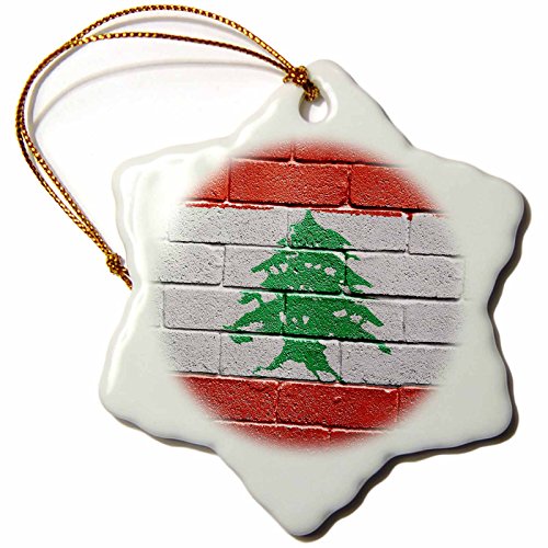 3dRose LLC orn_156923_1 Porcelain Snowflake Ornament, 3-Inch, "National Flag of Lebanon Painted Onto a Brick Wall Lebanese"