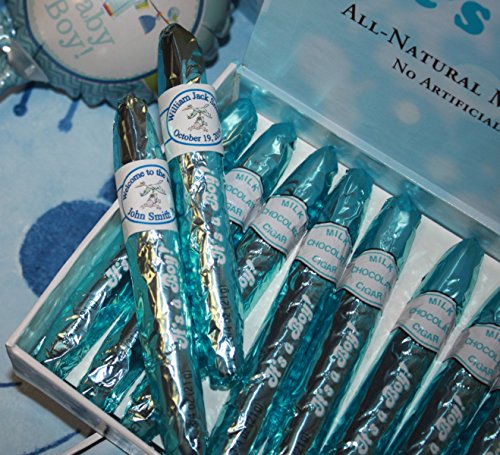 -. Brand : FavorOnline -. Color : Blue -. EAN : 0000609406661 -. Feature : 24 Individually Blue Wrapped Chocolate Cigars with Attached Personalized Cigar Bands and "It's a Boy!" message on the wrappers / Personalized Bands with 2 Curved Personalized Lines and blue stork carrying an newborn baby boy in the Center / Gourmet Solid Milk Chocolate / Freshness, Quality and Taste are guaranteed! / Ship Fast and Fresh, Shipping Cost includes Ice Pack to Avoid Melting if necessary -. Label : Thompson Chocolate -. Manufacturer : Thompson Chocolate -. Model : 5BB -. MPN : 5B -. PartNumber : 5B -. ProductGroup : Kitchen -. ProductTypeName : KITCHEN -. Publisher : Thompson Chocolate -. Studio : Thompson Chocolate -. Title : Personalized Blue It's a Boy Chocolate Cigars Box of 24 with Personalized Bands -. UPC : 000609406661