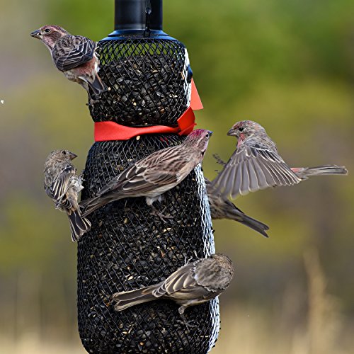 -. Feature : 3 lb. seed capacity / Powder coated, all metal mesh construction / Large, open feeding area / Attracts clinging birds / Dispenses black oil sunflower seed