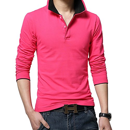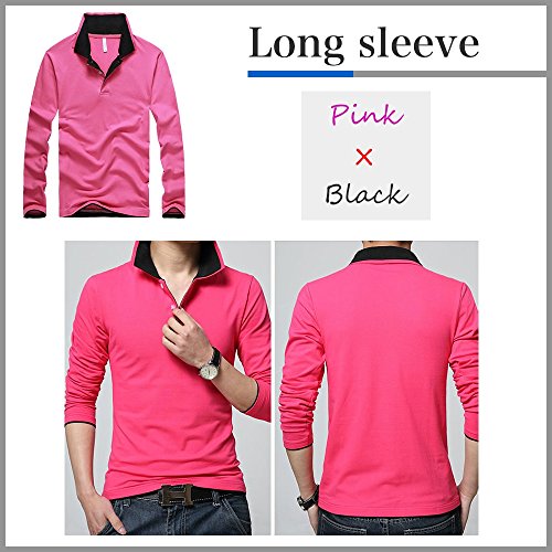 (EFF 바이 훠) F×4 맨즈 반소매 긴 소매 레이어드 바람 심플 골프 폴로 셔츠 6 컬러 FMT020 긴 소매홍 × 검정 XL