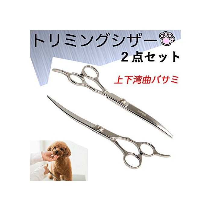 컷의 프로가 선택했다!애완동물용 트리밍 《시자》!수주위,얼굴 주위,엉덩이 주위의 세세한 작업에(만곡《바사미》상하2개 ) 【사이즈】위 휘어《시자》7인치하 휘어《시자》7인치