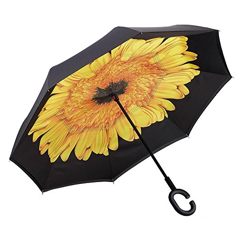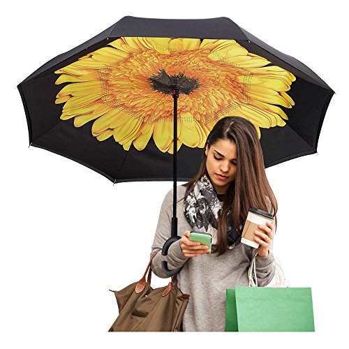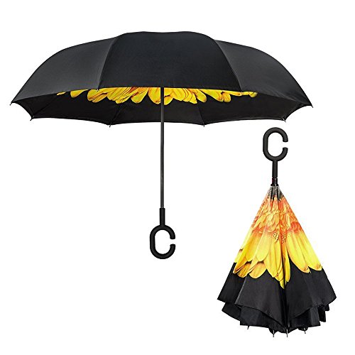 -. Title : Happytimelol Inverted Double Layer New Innovative Multifunctional Rain/UV/Wind Protection Car Reverse Folding Umbrella with C-Shaped Handle