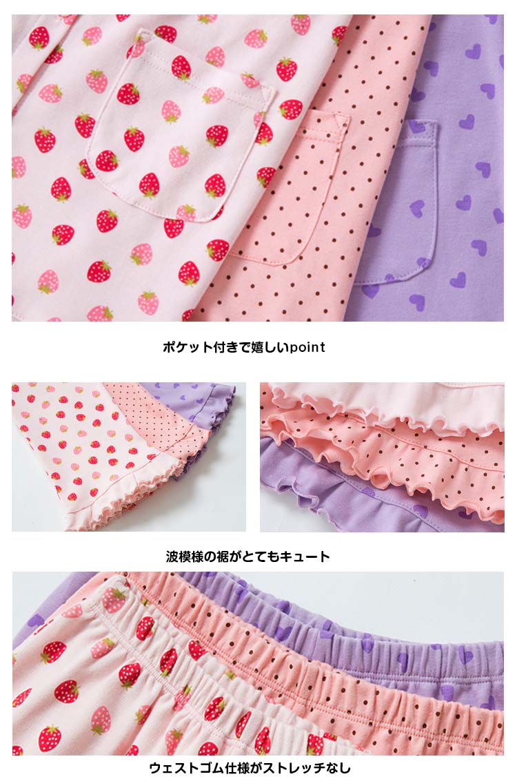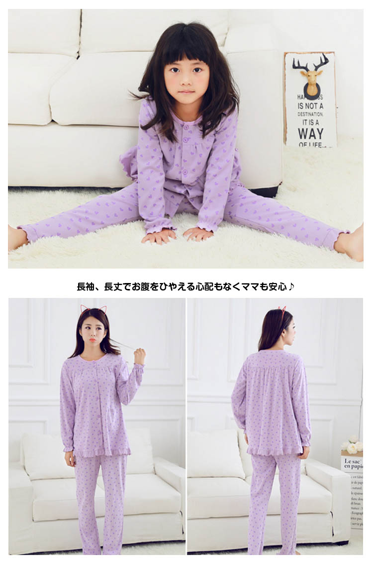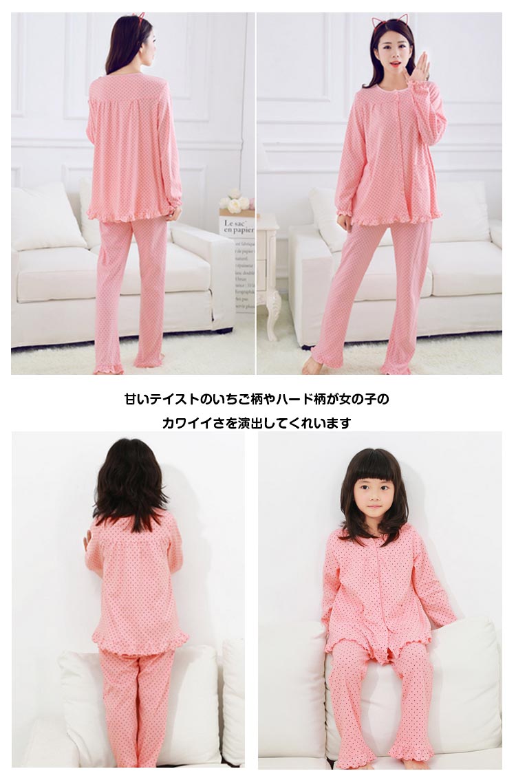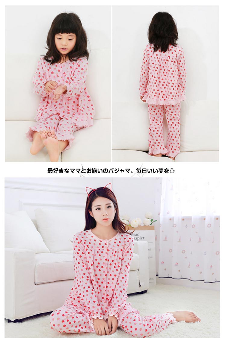 | 綿ならではの柔らかい肌触り、親子ペアパジャマ甘いテイストのいちご柄やハード柄が女の子のカワイイさを演出してくれいます最好きなママとお揃いのパジャマ、毎日いい夢を◎長袖、長丈でお腹をひやえる心配もなくママも安心♪ | |