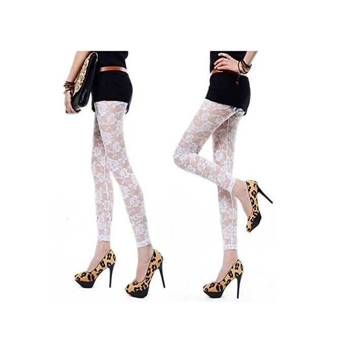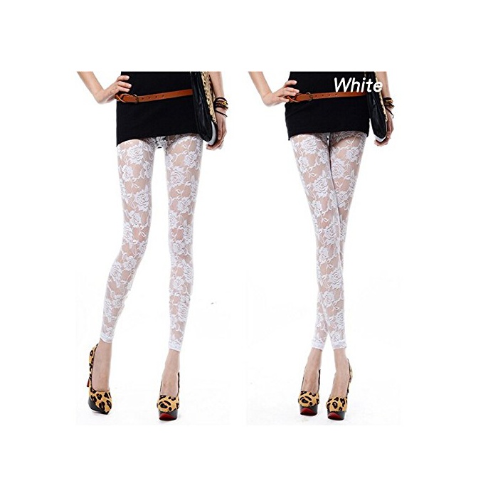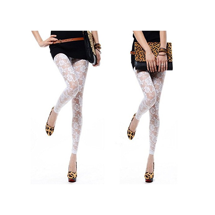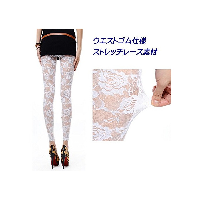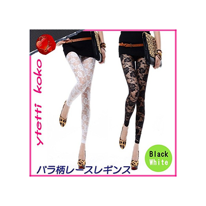 Ytetti (와이 테테) ytetti 장미 무늬 스트레치 레이스 레깅스 스패츠(Spats) 레이스 스타킹 블랙 화이트CZ023