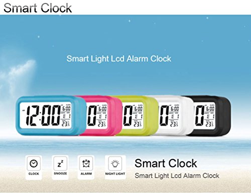 Specification: Materila:ABS plastic,duarable and hight quality. Size:5.4x1.8x3.1 inch Color:white,black,green,blue,pink Backlight:white backlight Function: 1.Time,date,day display,12/24 hour format. 2.Alarm with snooze,snooze time is 5 minutes. 3.Smart Night Sensor:the screen will auto light in darkness or night by sensor,it is very convenience to see time at night. 4.Temperature in C/F. 5.Battery:AAAX3 PCS not inclued Package : 1x Alarm clock 1x Product packaging 1x Manual