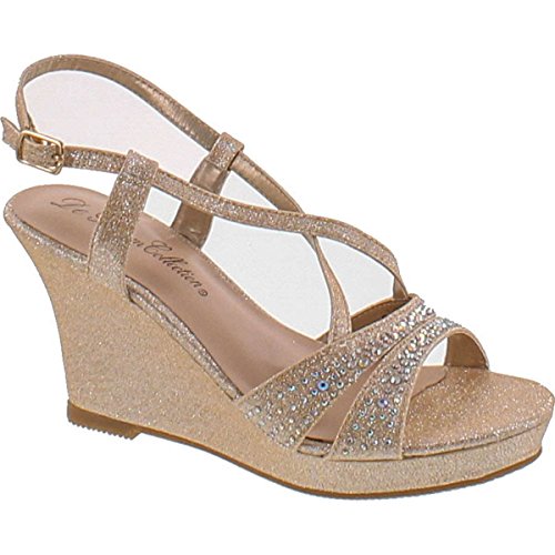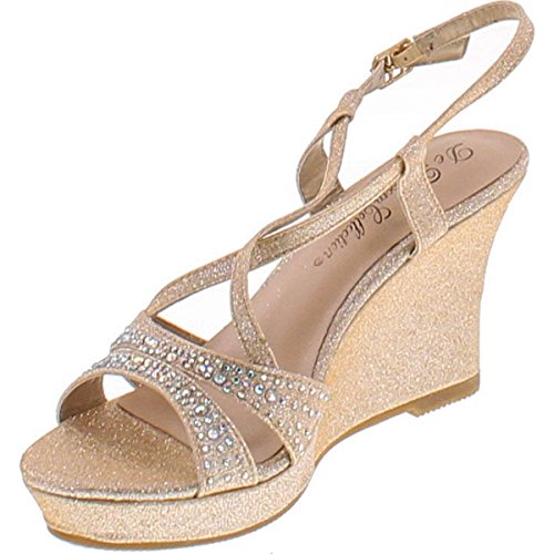 Binding : Apparel Product Description Blossom Winni-3 Women's Embellished Platform Wedge Sandal.Heel Height: 3.5 Inches, Width: Medium (B, M), Heel Type: Wedge, Style: Platforms Wedges, Occasion:Special Occasion. Embellished Synthetic upper, lightly padded insole, open-toe strappy construction. Man Made Materials, adjustable ankle strap, sturdy wedge heel , stylish and attractive all provide durable extended footwear. Directional, exciting and diverse, This Collection makes and breaks the fashion rules. Scouring the globe for inspiration, our Design Team is inspired by fashion's most covetable trends; providing you with a cutting edge wardrobe season upon season. Add sophisticated style to your wardrobe with these shimmery peep toe wedge sandals by de Blossom called Winni-3! 0