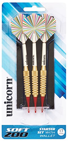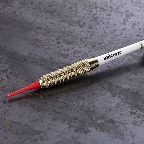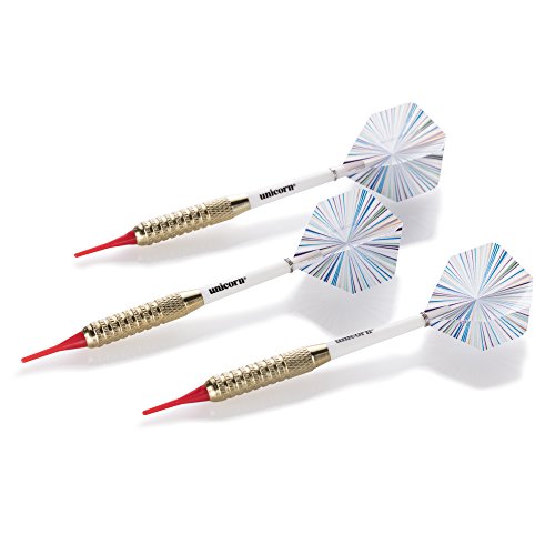 -. Feature : High-quality, entry-level Dart set from Unicorn - the world-leading brand in darts / Tips: (3) soft tip darts designed for Use with electronic dartboards / Barrels: (3) 16gm brass plated barrels allow for enhanced grip / Flights: (3) White polyester flights for harder throws / Shafts: (3) Red and White gripper shafts ideal for beginner players