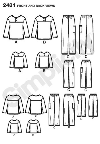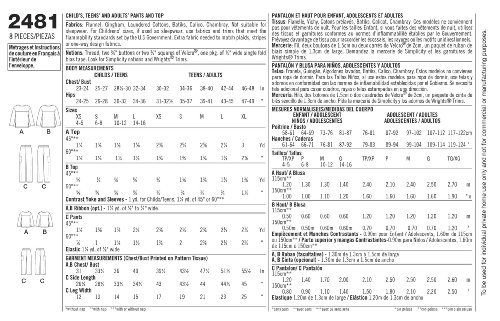 -. Feature : Adult/teen/child sleepwear in size a (xs - l / xs - xl), simplicity pattern 2481 / Number of looks included:3 / Instructions are written in english and spanish / Designed and manufactured in the USA