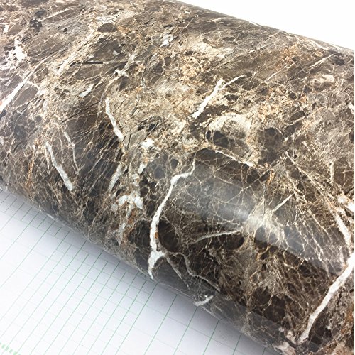 Dark Brown Granite Look Marble Gloss Film Vinyl Self Adhesive Counter Top Peel and Stick Wall Decal 24''x79''