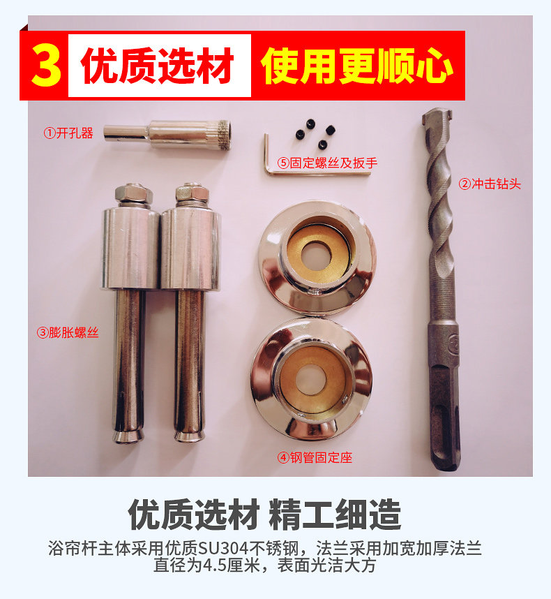 材料:304不锈钢 Material: 304 stainless steel 使用方式: 1.在墙上标出螺栓的位置; 2.用电钻钻出直径5mm的孔; 3.装上膨胀螺栓; 4.用螺钉将圆形底座固定在墙上; 5.按安装说明所示将圆管插入墙上的圆形底座,将圆盖盖在底座上。 产品尺寸 How to use: 1. Position the bolt on the wall; 2. Drill holes with a diameter of 5mm with electric drill; 3. Install the expansion bolts; 4. Secure the circular base to the wall with screws; 5. Insert the tubing into the circular base on the wall as shown in the installation instructions and cover the base with the cover. Product Size