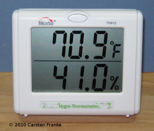 -. Feature : Indoor Temperature and Humidity Measurement for Hydroponics and Gardening / Large 1 inch tall numbers on the LCD display - easy to read / Measuring Range: 10% - 95% RH Relative Humidity, 14 to 140 °F / -10 to 60°C / Great for greenhouse, grow areas, orchid growers and gardeners / Battery: 1x AA is included and will last about 3 years