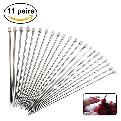 Knitting Needles Set:Meet all your knitting needs with this 11-pair set of beautiful stainless steel single-pointed straight knitting needles.They have standard points and are polished to a smooth finish for fast knitting with no snagging or catching.