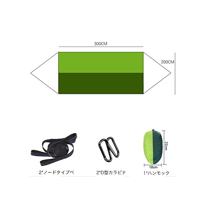 【세트 내용】1*해먹(hammock),2*D형 카라비너,2*노드 타입 벨트.해먹(hammock)와 수납 가방이 일체화 하고 있으므로 없앨 걱정지는 않습니다.