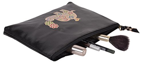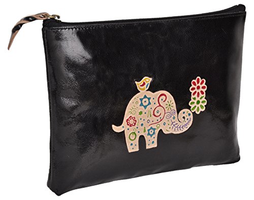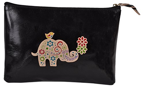SAAGA Hand Painted Leather Makeup Pouch Cosmetics Bag Makeup Organizer Travel Bag Toiletry Kit with Elephant Motif / Handmade : 8x5.25 inches (LxB)