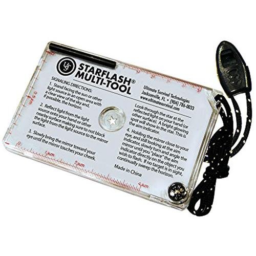 Studio : UST Brands Publisher : UST Brands Binding : Sports Product Description The starflash multi-tool combines UST's classic starflash mirror with other emergency essentials. This lightweight, virtually unbreakable signal mirror is capable of precision aiming, and now includes the following essentials: flint bar, inch ruler, lanyard with whistle, Liquid-filled Compass, and centimeter ruler. 0