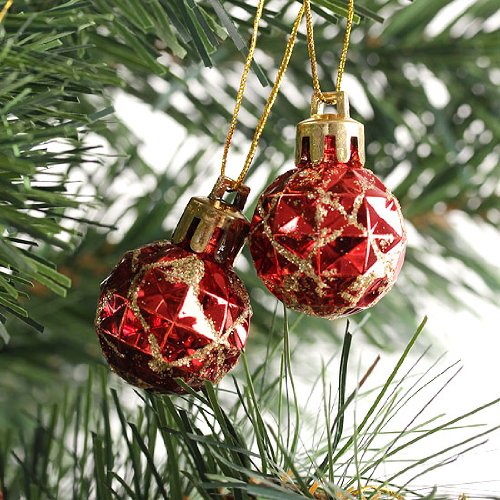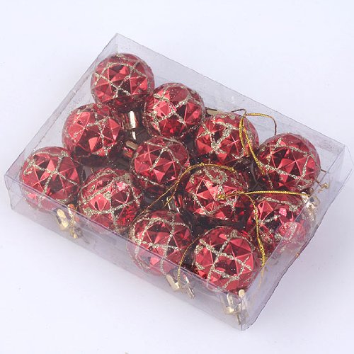 Yerwal 12pcs Mini Glitter Shatterproof Party Christmas Ball Ornament Xmas Tree Hanging Ornament Decoration (Red) (Red#2)