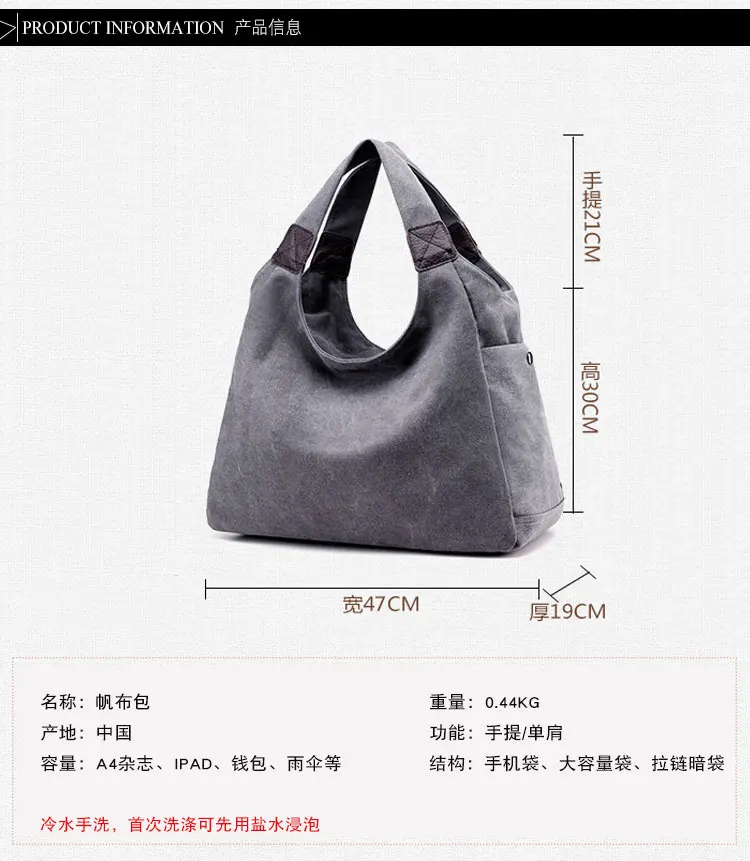 Model Number:Casual Women Canvas Bag Large Hobo Handbag 2018