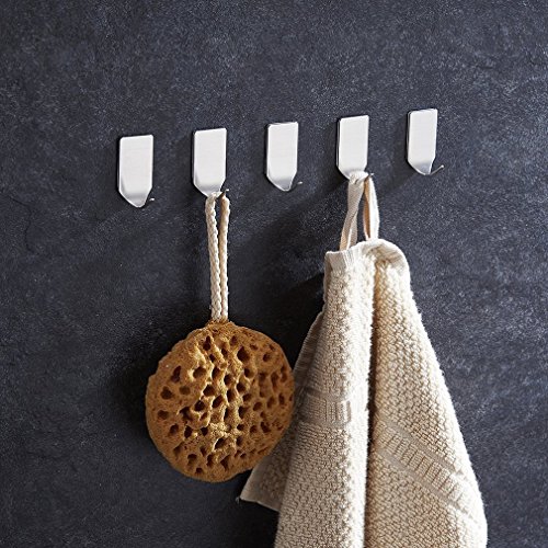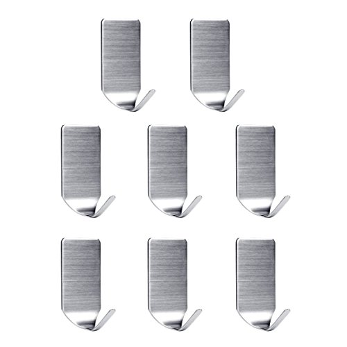 Adhesive Hooks,Heavy Duty 3M Hooks Stainless Steel Ultra Strong Waterproof Wall Hooks for Robe Coat Towel Keys Bags-Home Kitchen Bathroom(Set of 8)