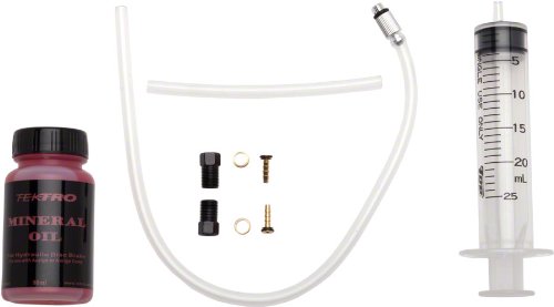 Studio : Tektro Publisher : Tektro Binding : Sports Product Description Tektro Hydraulic Bleed Kit. For servicing all hydraulic Tektro/TRP disc brakesets. Includes 50 ml mineral oil brake fluid, 1 syringe, plastic tubing, 2 hose retainers, 2 compression ferrules, and 2 brass inserts with O-ring. Fits Brand: Tektro/TRP. Hydraulic Fluid Type: Mineral Oil. 0