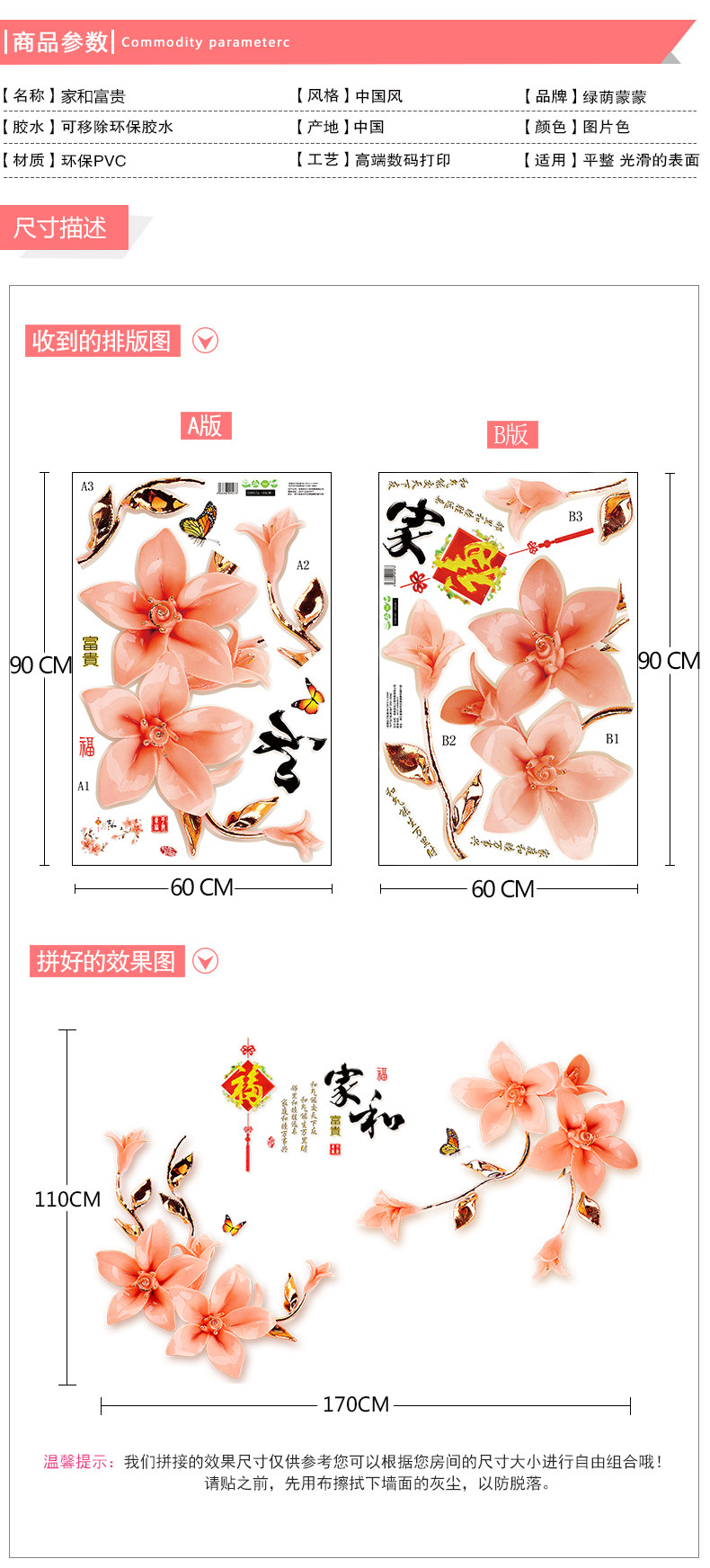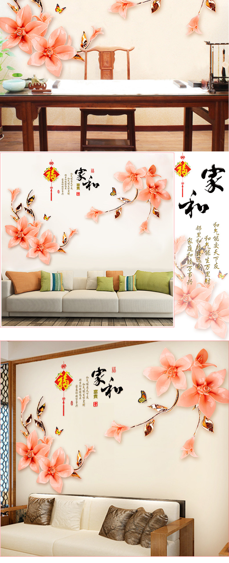 中国风墙贴墙纸自粘贴画客厅墙上装饰品卧室房间温馨床头墙壁贴纸
