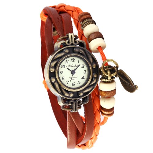 -. Title : [エーエムピーエム24]AMPM24 ヴィンテージ ブロンズ ウィーブラップ チャーム ウィメンズ ビーズ レザー ブレスレット クォーツ 腕時計WAA486
