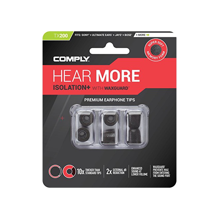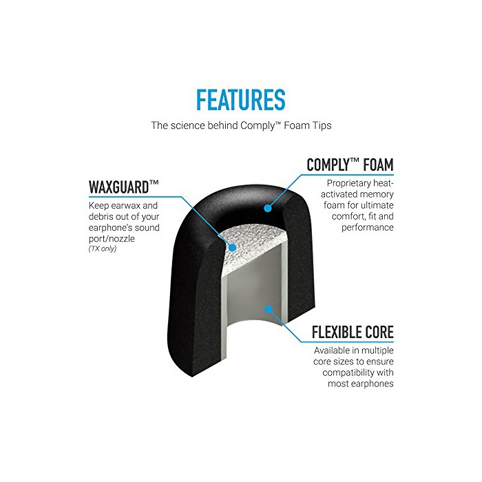 원본상품명: Comply(コンプライ) Tx-200 スタンダド 耳垢ガド付き ノイズキャンセリング メモリフォム イヤホンチップス Sony, B&O Play, MEE Audio M6 Pro, U