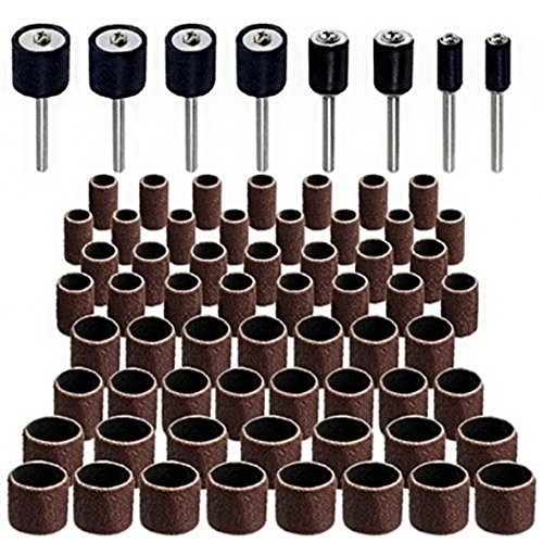 - COMMON, STANDARD SIZES VARIETY KIT: Our 51 piece kit was assembled with the most preferred sizes for professional carpenter & contractors. Kit contains 6 reusable rubber drums edged with 1/8” shank. Two of each of following width sizes are included: ½”, 3/8” & 1/4" diameter. Also contains 45 quick change sanding bands- 120 grit. Sanding bands conveniently come in 15 of each of the following width sizes: ½”, 3/8” & 1/4" diameter.