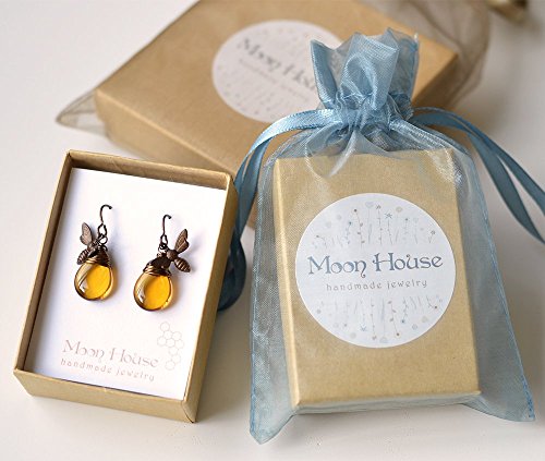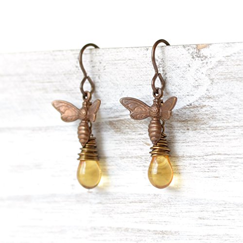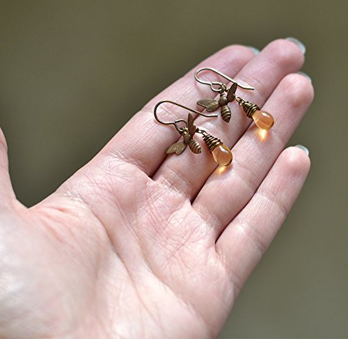 -. Title : Honey Drop Brass Bee Earrings