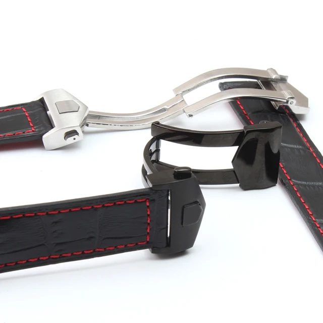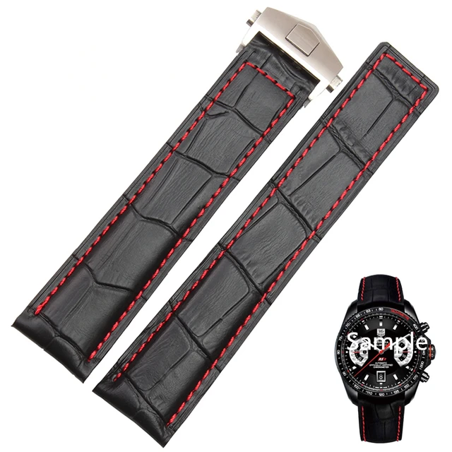 | [해외] TJP 20 미리메터 22 미리메터 정품 가죽 시계 스트랩 블랙 레드 스티치 시계 줄 교체 태그 카레라 Heuer 팔찌 단어 |