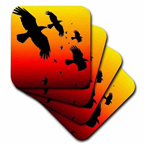 3dRose cst_78713_3 Ravens on A Red Sky- Animal, Bird, Birds, Crow, Halloween, Myth, Mythological, Mythology, Raven-Ceramic Tile Coasters, Set of 4