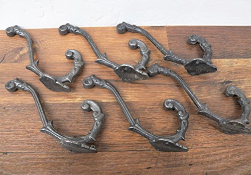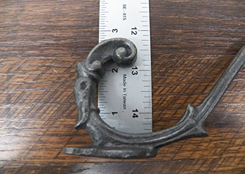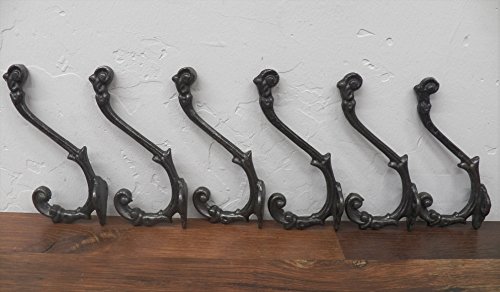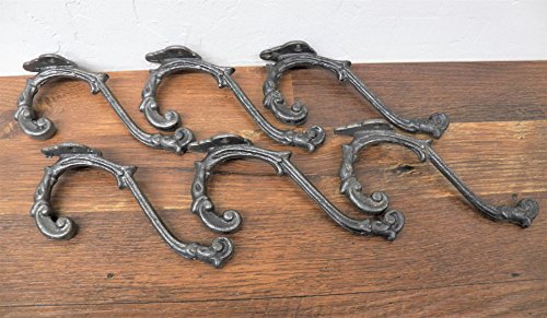 -. Title : Lot of 6 Beautiful Large 6" x 3" Fancy Ornate Cast Iron Coat Hat Hooks Hangers- Heavy Duty