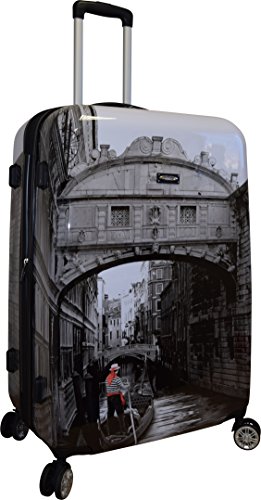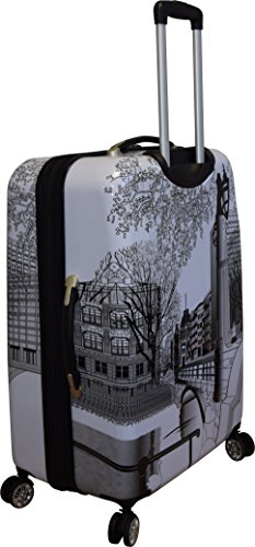-. Feature : 24" spinner suitcase in polycarbonate shell, light weight and fully lined interior. / Vintage fashionable vintage - retro look with double inline skate spinner wheels / Interior features tie-down straps, interior zippered mesh pocket, zippered divider and restraining straps / Imported. Expandable for 30% extra capacity. / Telescoping pull handles with side carrying handle and bottom feet