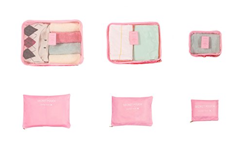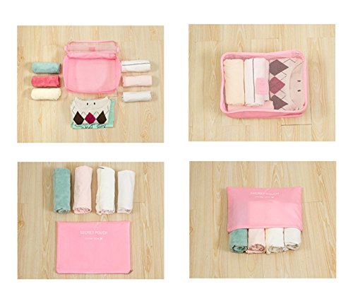 Style Travel package, 6 pieces of waterproof clothing, underwear finishing bag, travel bag, including six sets. (Pink)