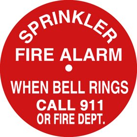 -. Brand : PT -. EAN : 0886815009557 -. Feature : 6" Diameter: Fits 6", 8" and 10" Alarm Bells. / Reads: "Sprinkler Fire Alarm - When Bell Rings Call 911 or Fire Dept." / Red background with white letters / White powder coated 21 gauge (.0285") aluminum -. ProductGroup : Home Improvement -. ProductTypeName : HARDWARE -. Title : Alarm Bell Call 911 Sign Engineer Grade, 6" Round Aluminum Red On White -. UPC : 886815009557