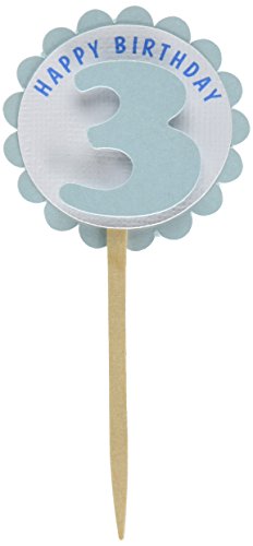 All About Details Shimmer Light Blue 3rd Birthday Cupcake Toppers, Set of 12