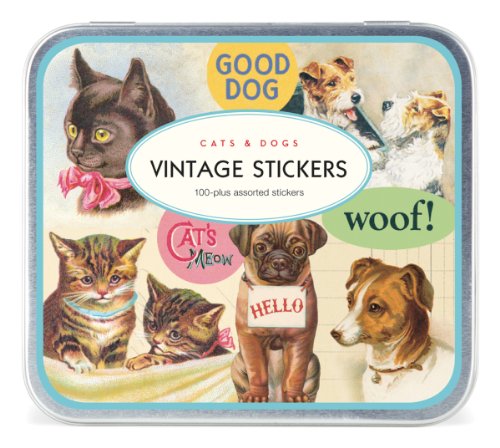 Cavallini Vintage Cats and Dogs Sheet with 100 Plus Assorted Stickers Packaged in a Tin