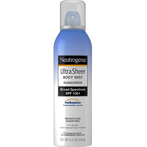 Neutrogena Ultra Sheer Body Mist Sunscreen provides broad-spectrum UV protection in an ultra light sheer mist. Stabilized with Helioplex Technology, it provides superior balanced broad-spectrum protection against UVA-aging and UVB-burning rays in an ultra-light, non-greasy finish. This weightless formula applies easily to even hard-to-reach areas. This one-touch continuous spray works at any angle.Feature