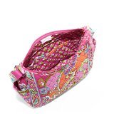 •Timeless hobo style accessorized with coordinating trim and an adjustable strap.